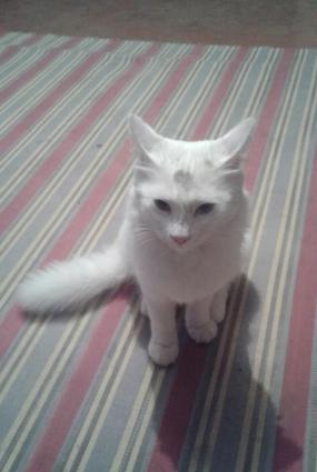 1yaşı vat.Başındakı qara nöqtə tük deyil qara.Sadəcə ləkədi.Pişik özü ağ tüklüdür.Qiymətdə razılaşmaq olar.Cins pişikdir.
